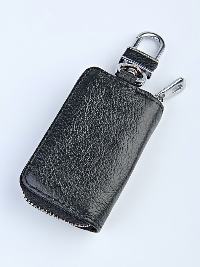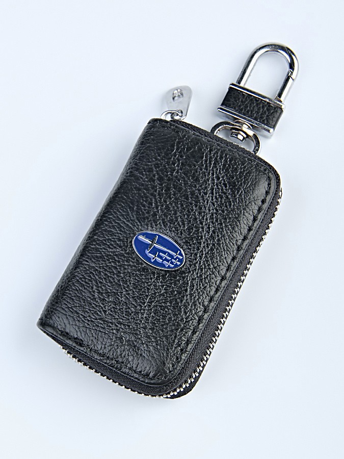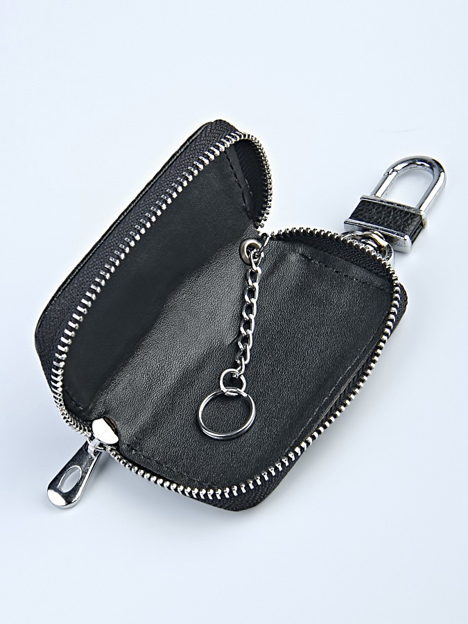 Стильная, компактная ключница. Защищает ключи от повреждения и пыли. Состоит из одного отделения, закрывающегося на застежку-молнию, внутри присутствует металлическое кольцо для крепления ключей. Фурнитура серебристого цвета. На лицевой стороне изделия расположена металлическая эмблема автомобиля.