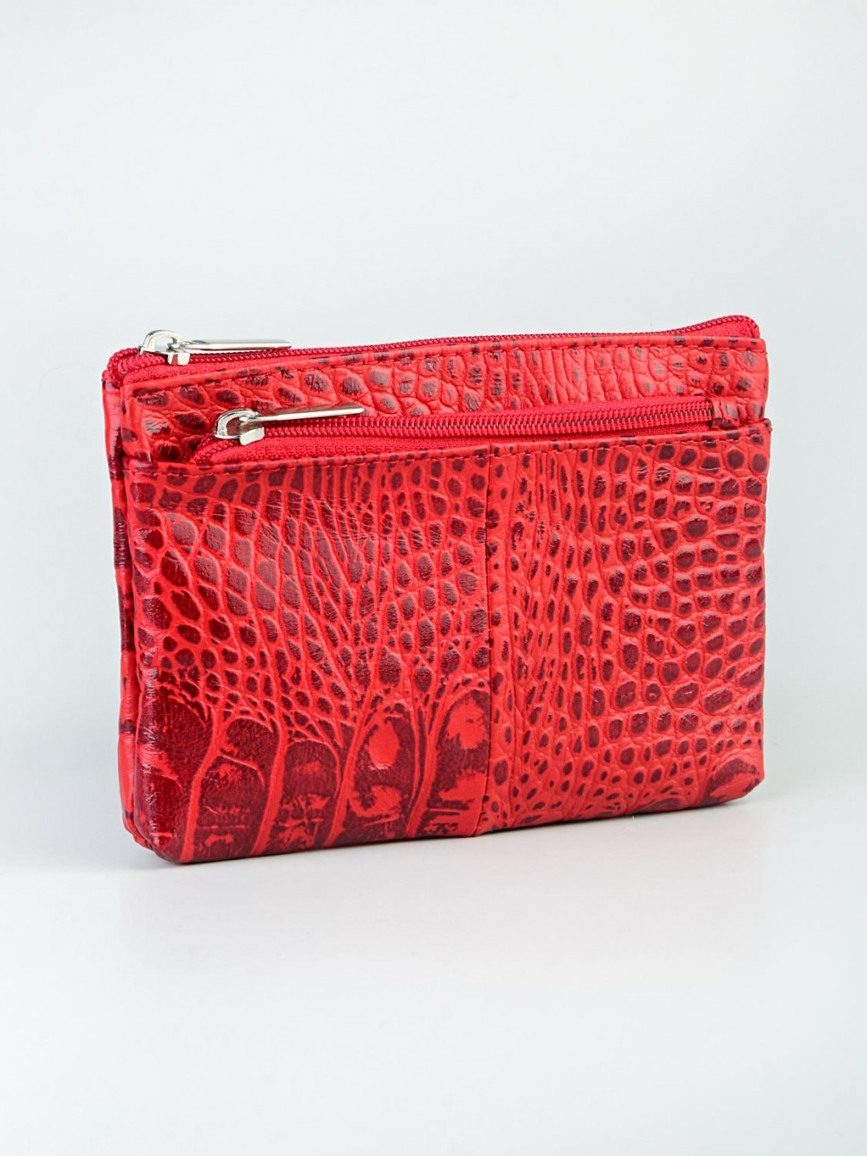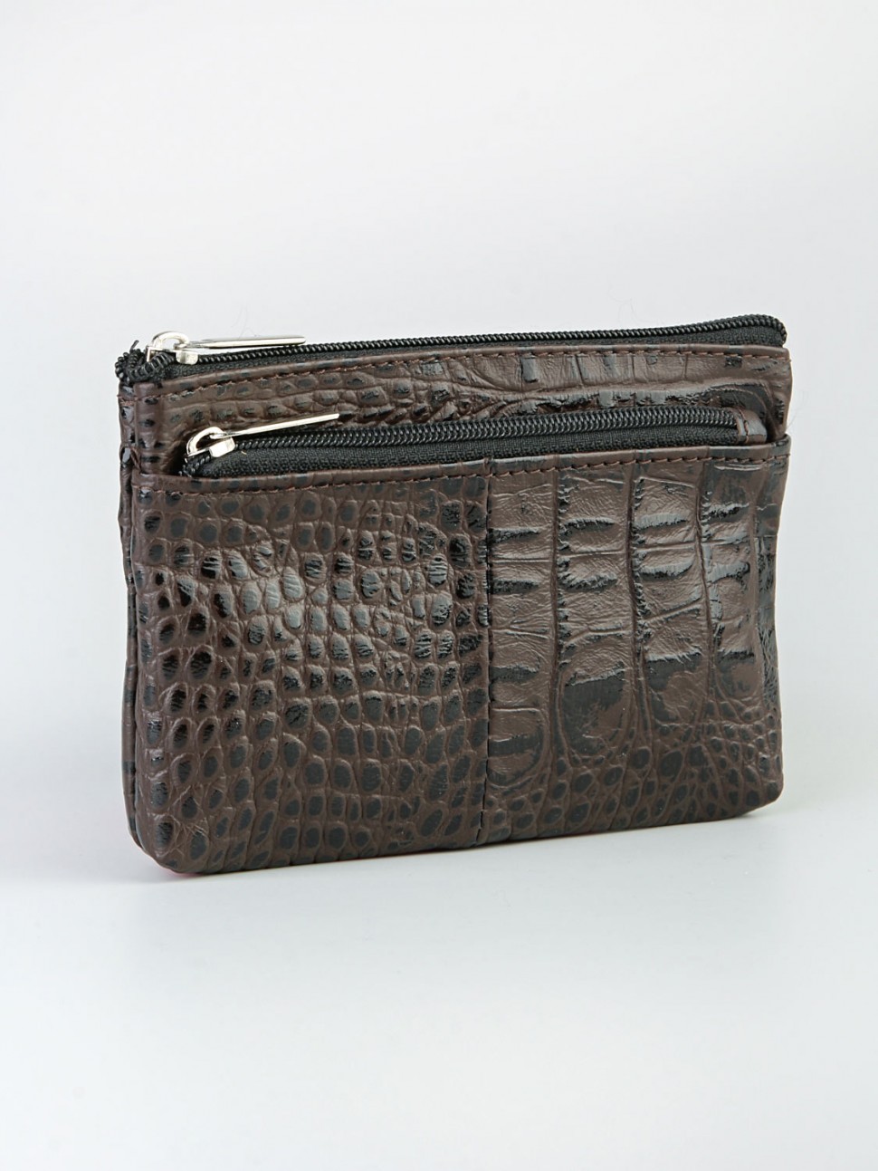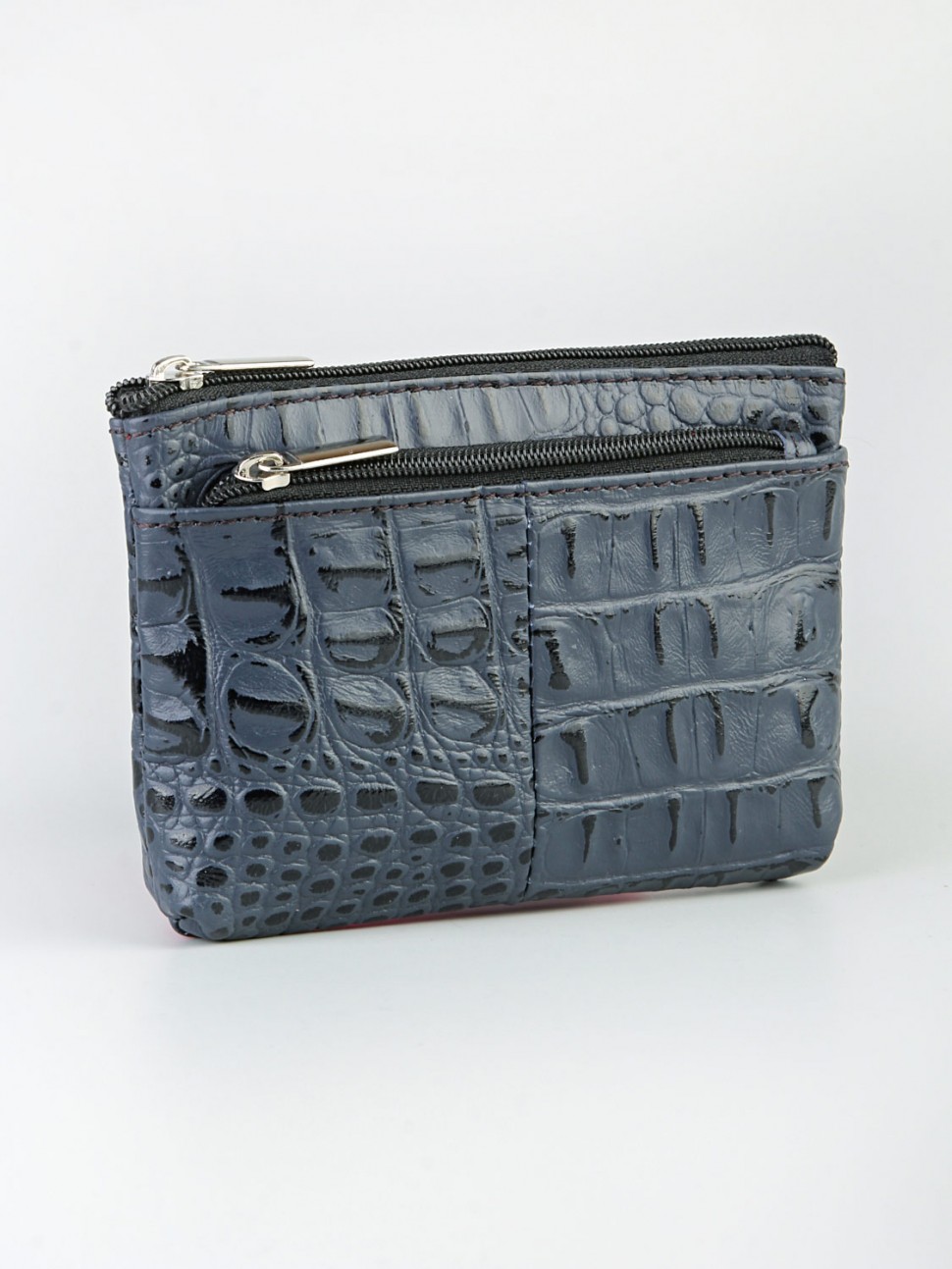 Ключница на молнии из натуральной кожи (кайман), с колечком для ключей, с подкладом.