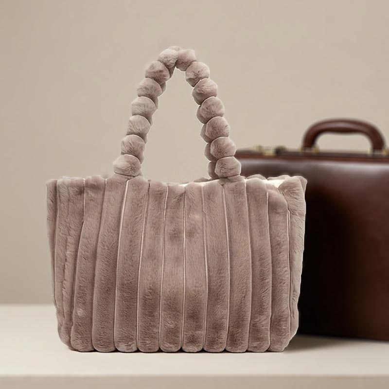 Объёмная женская сумка из мягкого фактурного материала с вертикальной простёжкой.