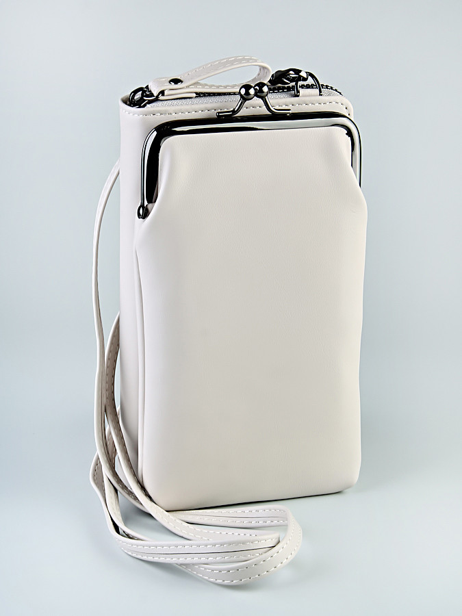 Легкая, компактная сумочка вмещает все необходимые вещи: телефон, деньги, ключи, банковские карты. Оснащена двумя застежками - молнией и фермуар, благодаря чему сумочка смотрится оригинально и необычно.