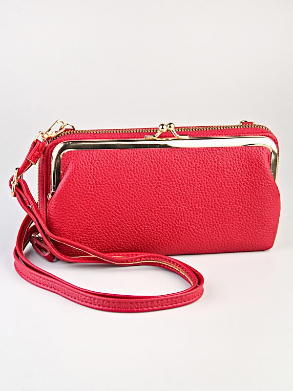Легкая, компактная сумочка вмещает все необходимые вещи: телефон, деньги, ключи, банковские карты. Оснащена двумя застежками - молнией и фермуар, благодаря чему сумочка смотрится оригинально и необычно.