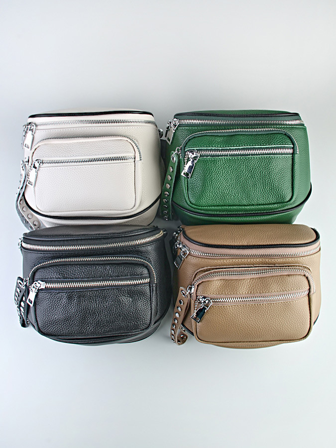 Модная сумочка полукруглой формы оснащена вместительным внутренним отделением с удобным карманом на молнии. С внешней стороны изделие также дополняют карманы на молнии, куда удобно класть мелкие предметы, не открывая сумочку полностью. Имеет плечевой ремень (съёмный), который регулируется по длине. Стильная кросс-боди маленького размера, но достаточно вместительная очень удобна, в нее можно положить мобильный телефон и смартфон, кармашки подойдут для ключей и монет, банковских или скидочных карт, и других вещей и мелочей.
