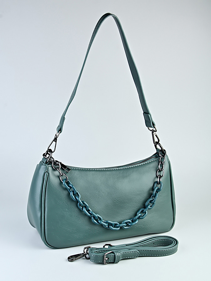 Стильная и современная, базовая женская сумка из высококачественной эко-кожи. В комплекте два ремня: из искусственной кожи, который можно отрегулировать (подойдет высоким и невысоким), стандартного размера. Декоративная цепочка из пластика НЕ снимается, ее также можно использовать в качестве дополнительного ремешка, что позволяет носить аксессуар на локте или запястье. Сумка каркасная, хорошо держит форму. Сумка имеет одно основное отделение, два внутренних кармана и наружный задний карман на молнии.