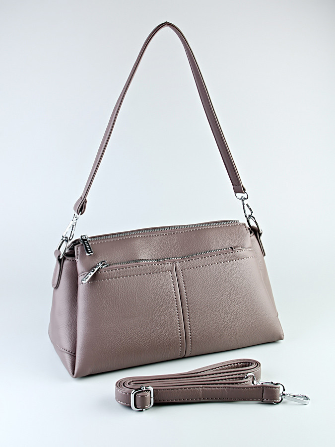 Сумка имеет три основных отделения, внутри среднего отделения есть карман на молнии. Внешняя часть сумки имеет карман на молнии спереди и сзади. Дополнительно прилагается регулируемый ремешок.