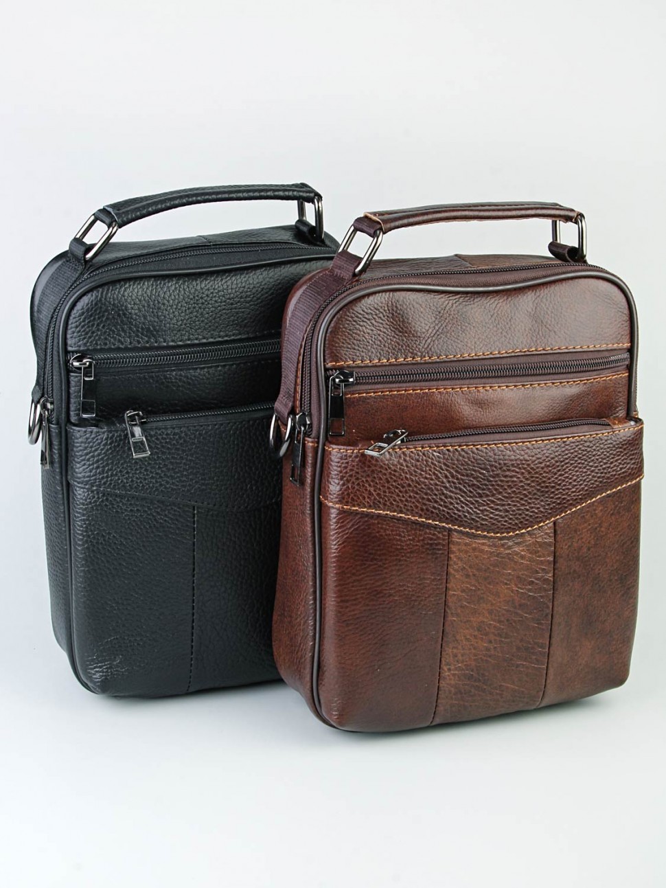 Сумка выполнена из натуральной кожи. Имеет одно основное отделение, два кармана на молнии на лицевой стороне и потайной кармашек внутри. С тыльной стороны еще два кармана на молнии. Носить сумку можно как в руке, благодаря ручке, расположенной сверху, так и через плечо. Практичная и удобная в использовании мужская барсетка, создана, чтобы носить с собой только самые необходимые вещи: паспорт, документы для авто, мобильный телефон, ключи и пр.