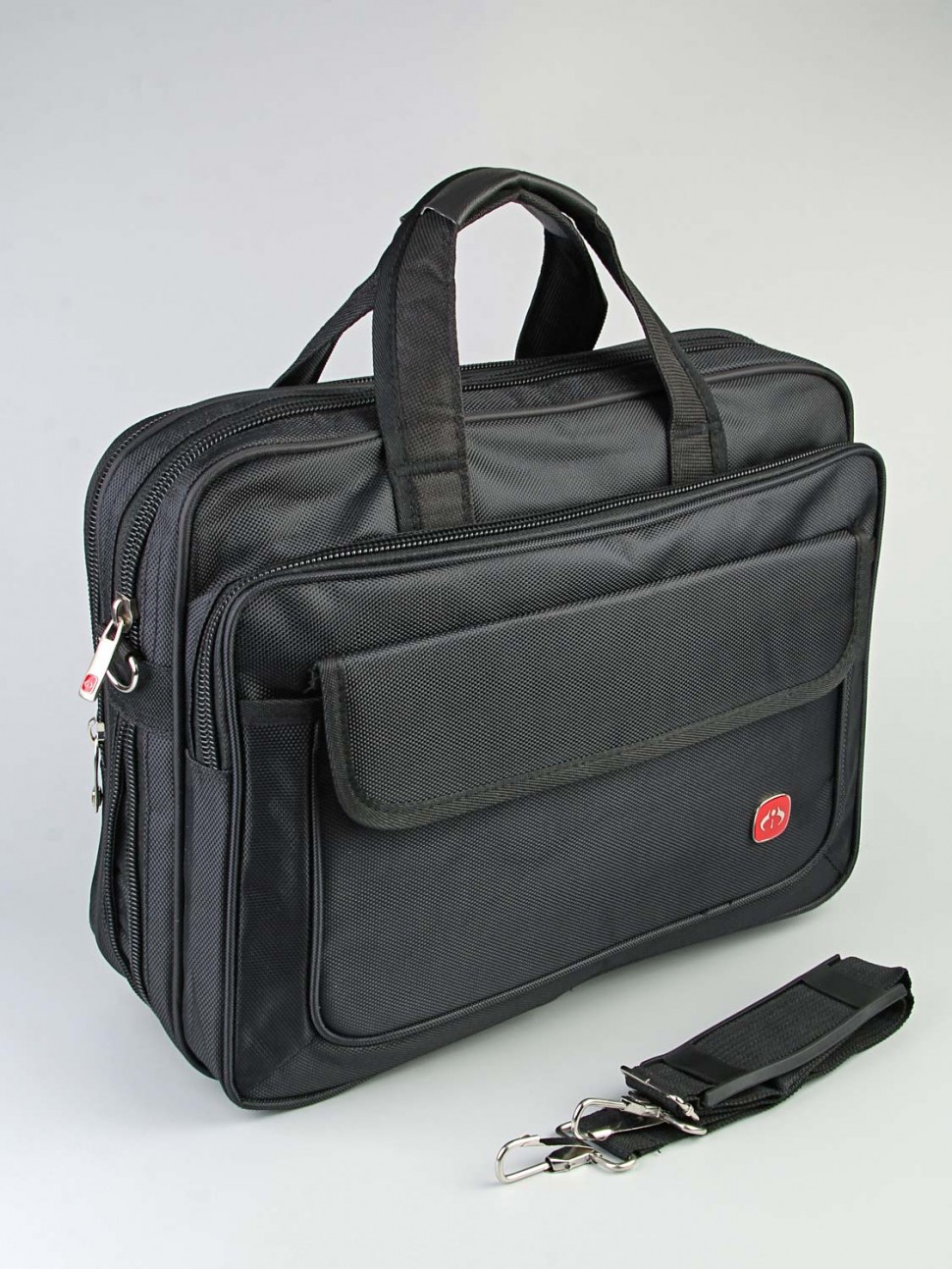 Портфель выполнен из практичного водонепроницаемого материала. Имеет основной большой отдел на молнии и отделение для документов. На лицевой стороне два кармана на молнии и карман под клапаном на липучке. Есть накладной карман на молнии с тыльной стороны. Плечевой ремень регулируется по длине. Носить портфель можно как в руке, благодаря ручке, расположенной сверху, так и через плечо.