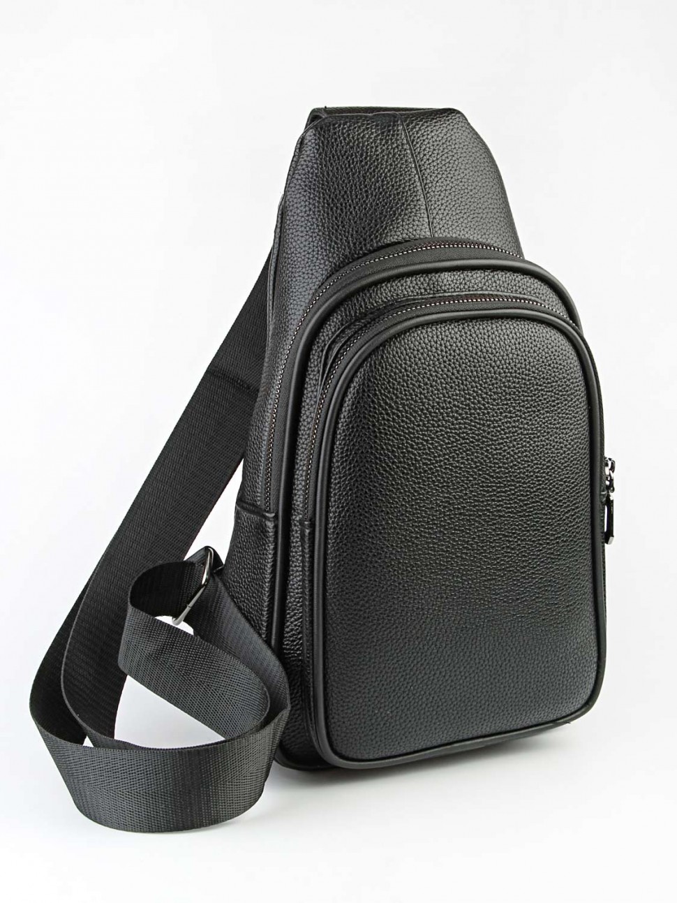 Мужская нагрудная сумка имеет одно основное отделение и накладной карман на лицевой стороне.