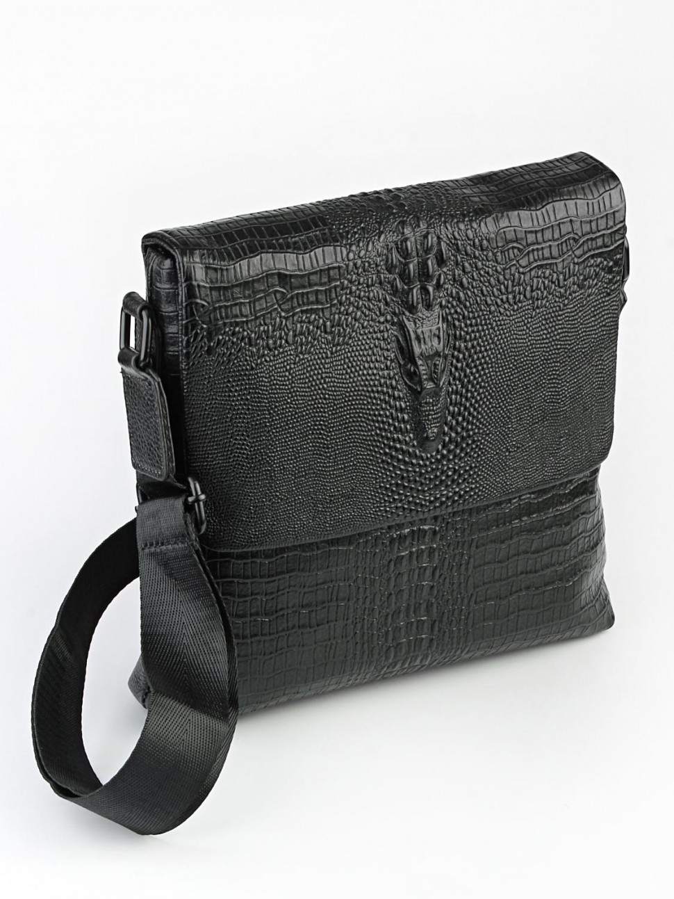Мужская сумка из натуральной кожи с фактурным тиснением "голова крокодила" на молнии под клапаном имеет одно основное отделение.