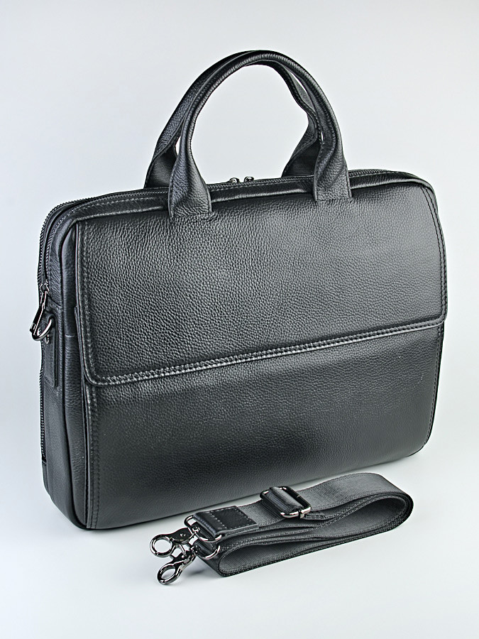 Портфель мужской выполнен из натуральной кожи. Надежная, стильная, практичная деловая сумка, которой удобно пользоваться в рабочих поездках, на работе и на учебе. Сумку-портфель можно носить по-разному: на плече, через плечо или в руке за удобную ручку. Портфель имеет два основных отделений на молнии, внутри есть отделение для документов и карман на молнии. Снаружи, на лицевой стороне дополнительный карман под клапаном (закрывается на 2 магнитные кнопки). С тыльной стороны карман на молнии. В комплект входит съемный наплечный ремень, регулируемый по длине. Качественная фурнитура рассчитана на длительный срок службы.