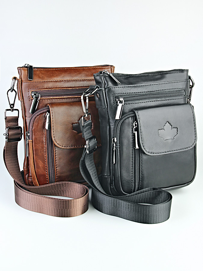 Мужская сумка из натуральной кожи имеет одно основное отделение. Внутри 1 открытый карман и 1 карман на молнии. На лицевой стороне 3 кармана на молнии. С тыльной стороны есть дополнительный карман на молнии. Ремень регулируется по длине. Аксессуар подойдет для хранения самых необходимых в повседневной жизни вещей.