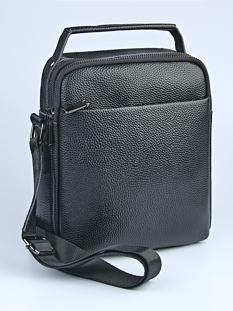 Мужская сумка из натуральной кожи. Практичная модель для повседневного использования, работы и поездок. Сумка выполнена из натуральной зернистой кожи. Материал плотный, износостойкий, хорошо держит форму и сохраняет аккуратный внешний вид при регулярной носке. Основное отделение закрывается на молнию. Внутри предусмотрено удобное пространство для документов, телефона, кошелька и других личных вещей. Подкладка плотная, аккуратно прошитая. На внешней стороне расположены дополнительные карманы на молнии для быстрого доступа. С тыльной стороны также есть карман на молнии. Сумка оснащена регулируемым плечевым ремнем, подходит для ношения на плече или через плечо. Сверху предусмотрена кожаная ручка для переноски в руке. Компактный размер делает модель удобной для ежедневного использования, при этом сумка остается достаточно вместительной.