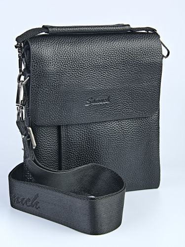 Эта компактная, но вместительная сумка — идеальный выбор для современного мужчины, который ценит порядок и комфорт. Модель выполнена в классическом черном цвете с выразительной фактурой натуральной кожи, что придает ей солидный и премиальный вид. Два независимых отделения на молнии позволяют удобно разместить документы, гаджеты, кошелек и ключи. Основные отделения защищены дополнительным клапаном на магнитах. Качественные металлические молнии и карабины обеспечивают долгий срок службы. Съемный регулируемый плечевой ремень из плотного текстиля и удобная ручка для переноски в руках.