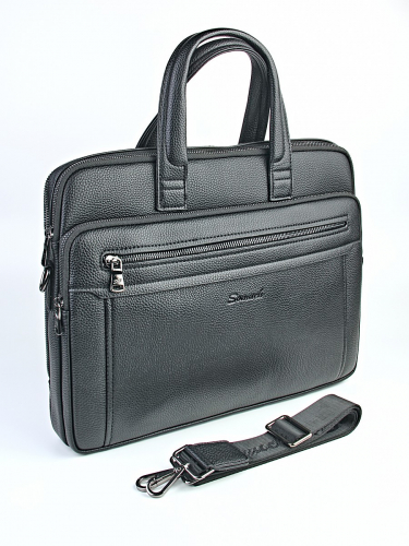Эта сумка создана для мужчин, которые ценят премиальный внешний вид и идеальный порядок в вещах. Аксессуар выполнен из высокотехнологичной эко-кожи с выразительной зернистой фактурой (флотер), которая визуально и на ощупь не уступает натуральной коже, но при этом обладает повышенной износостойкостью. Основное отделение легко вмещает документы формата А4 и планшет. Специальный внутренний отсек с мягкими стенками и фиксирующим ремешком надежно защищает ноутбук или планшет от ударов. Три внешних кармана на молнии (один спереди и два сзади) обеспечивают мгновенный доступ к документам, ключам или портмоне. Надежные металлические молнии и карабины в цвете «темный никель» рассчитаны на интенсивное ежедневное использование. Анатомические ручки с усиленным креплением для ношения в руке и съемный регулируемый плечевой ремень из плотного текстиля удобны для ношения.