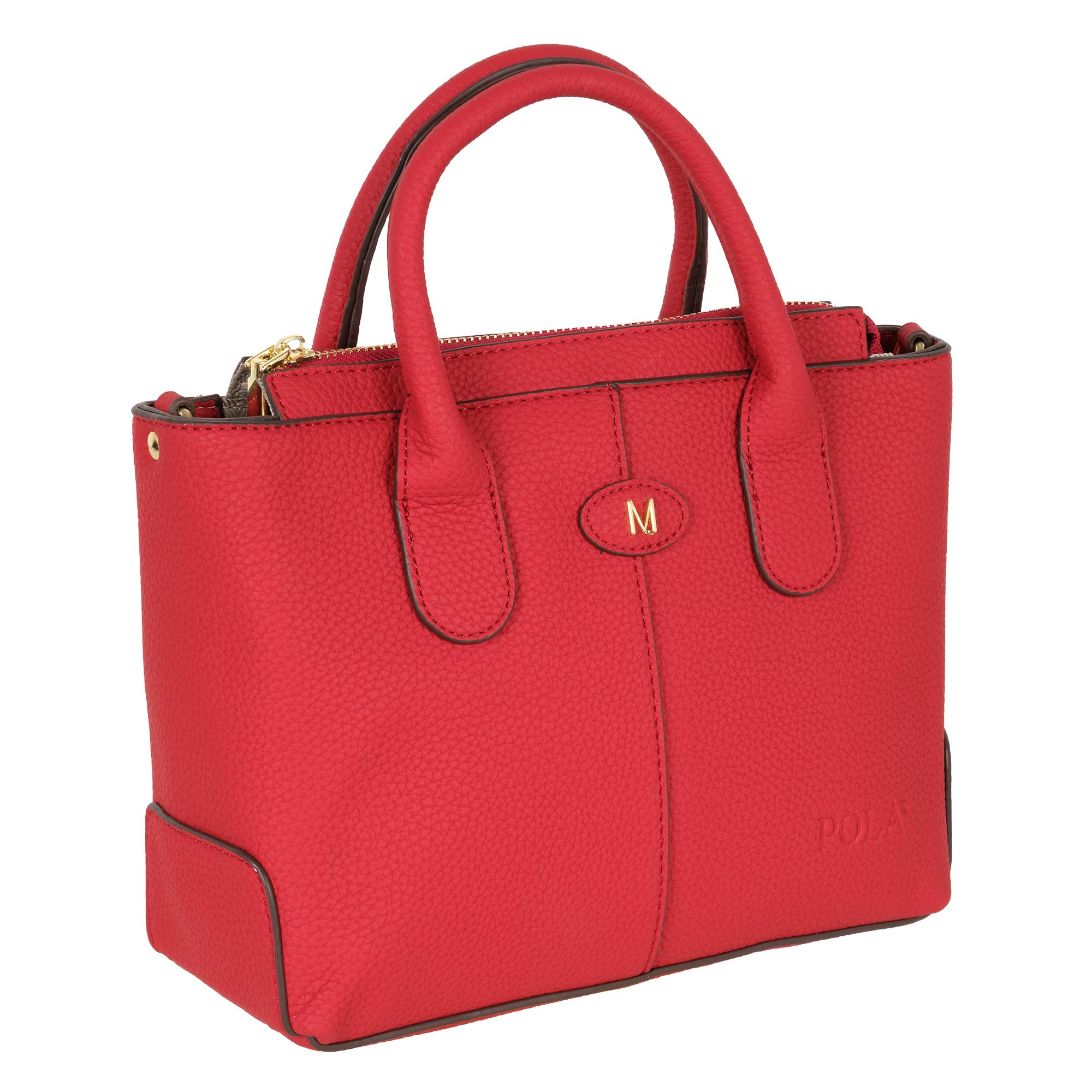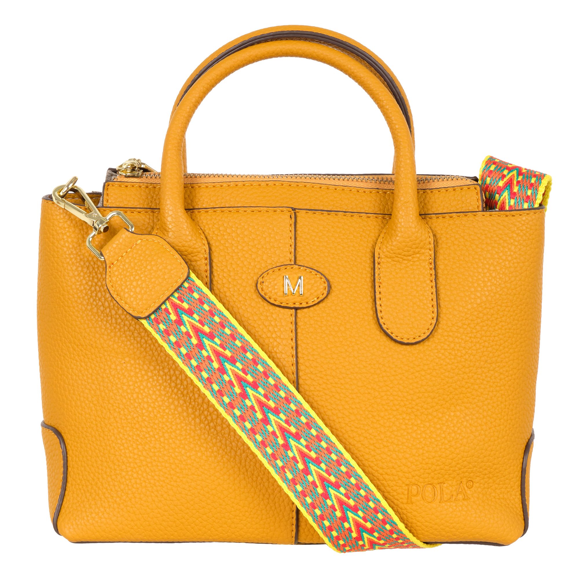 Стильная женская сумка фирмы Pola выполнена из экокожи и украшена брелоком. Основное отделение закрывается на металлическую молнию. Внутри сумочки есть маленький карман на молнии и два открытых. Сумка прекрасно подойдёт для повседневной носки. У сумки есть ручки для переноски, высота которых составляет 10 см их можно украсить платком и два съёмных, ремешка, один из экокожи тонкий регулируемый длина которого- 121 см и 87 см второй ремешок из текстиля. Цвет фурнитуры-золото.