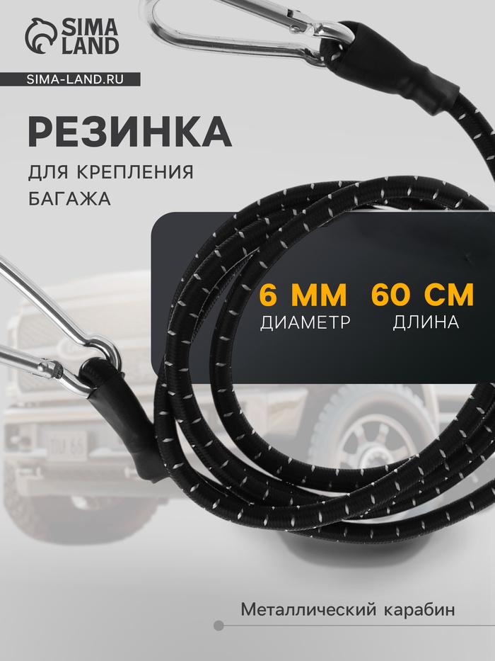 Резинка для крепления багажа TORSO, 60 см, d=6 мм, металлический карабин