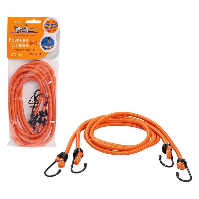 Резинка-стяжка, 120 см, d=8 мм, металлические крючки, набор 2 шт.