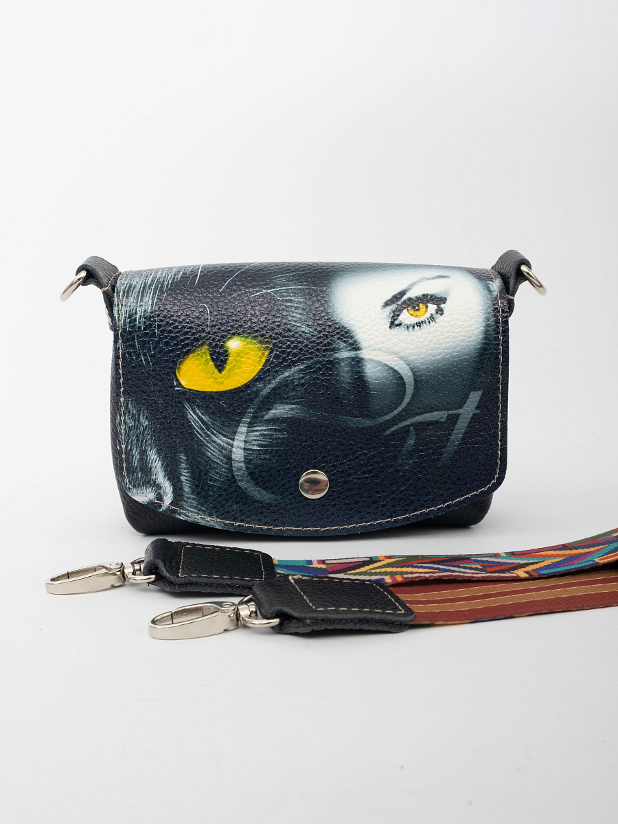 Сумочка, кросс-боди изготовлена из натуральной кожи КРС флоттер, закрывается на кнопку. Внутри одно отделение и два  кармашка для визиток. Снаружи карман закрывается на молнию. Эргономичный аксессуар для путешествий, прогулок в котором удобно носить личные вещи, телефон, ключи, салфетки. Незаменимая вещь при перелетах для хранения дорожных документов. В комплекте регулируемый ремень из цветной стропы длинною 140 см.
