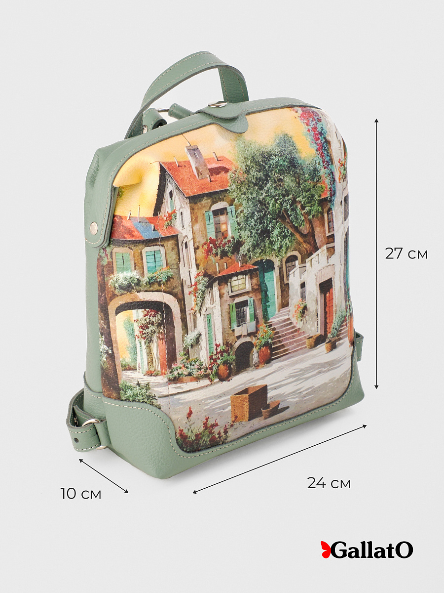 Современный, среднего размера, удобный для прогулок, путешествий и поездок рюкзак tm GALLATO. Аксессуар выполнен из натуральной кожи. Состоит из одного большого отделений. Рюкзак с фермуаром. который фиксируется кнопкой. Внутри есть карманы для мелочей и телефона. Снаружи имеется карман. закрывающийся на молнию. В него входит любой телефон. Удобный, легкий, прост в уходе. Идеально подходит как женщинам, девушкам так и юным леди. Лямки регулируются под любой рост. Размер сумки 27*24*11 см.