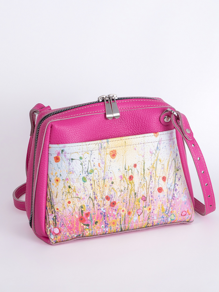 Женская сумка Meri принт. Стильная сумка изготовлена из натуральной кожи, сумка закрывается на молнию . Внутри имеется 3 отделения, одно из них закрывается на молнию, что позволяет использовать его как карман для мелочи и других нужных вещей. Наружный карман закрывается на молнию. Разнообразие цветов кожи позволяют носить сумку с любой одеждой. В комплекте прилагается элегантный плечевой ремешок , который надежно крепится к сумке карабинами, длина ремешка 125 см. Размер: 22 * 17 * 11 см