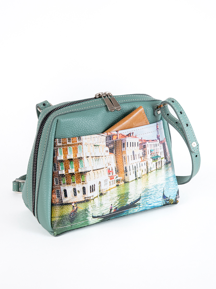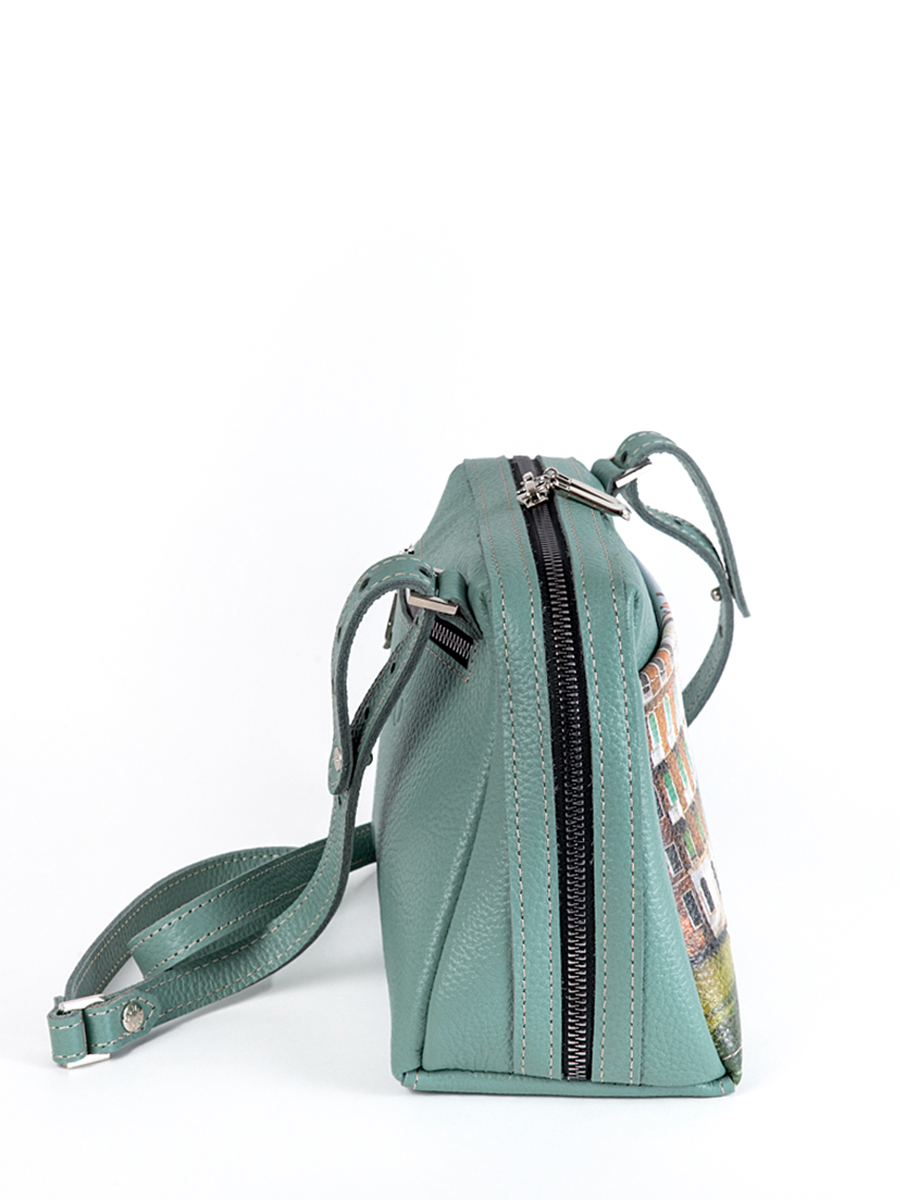 Женская сумка Meri принт. Стильная сумка изготовлена из натуральной кожи, сумка закрывается на молнию . Внутри имеется 3 отделения, одно из них закрывается на молнию, что позволяет использовать его как карман для мелочи и других нужных вещей. Наружный карман закрывается на молнию. Разнообразие цветов кожи позволяют носить сумку с любой одеждой. В комплекте прилагается элегантный плечевой ремешок , который надежно крепится к сумке карабинами, длина ремешка 125 см. Размер: 22 * 17 * 11 см