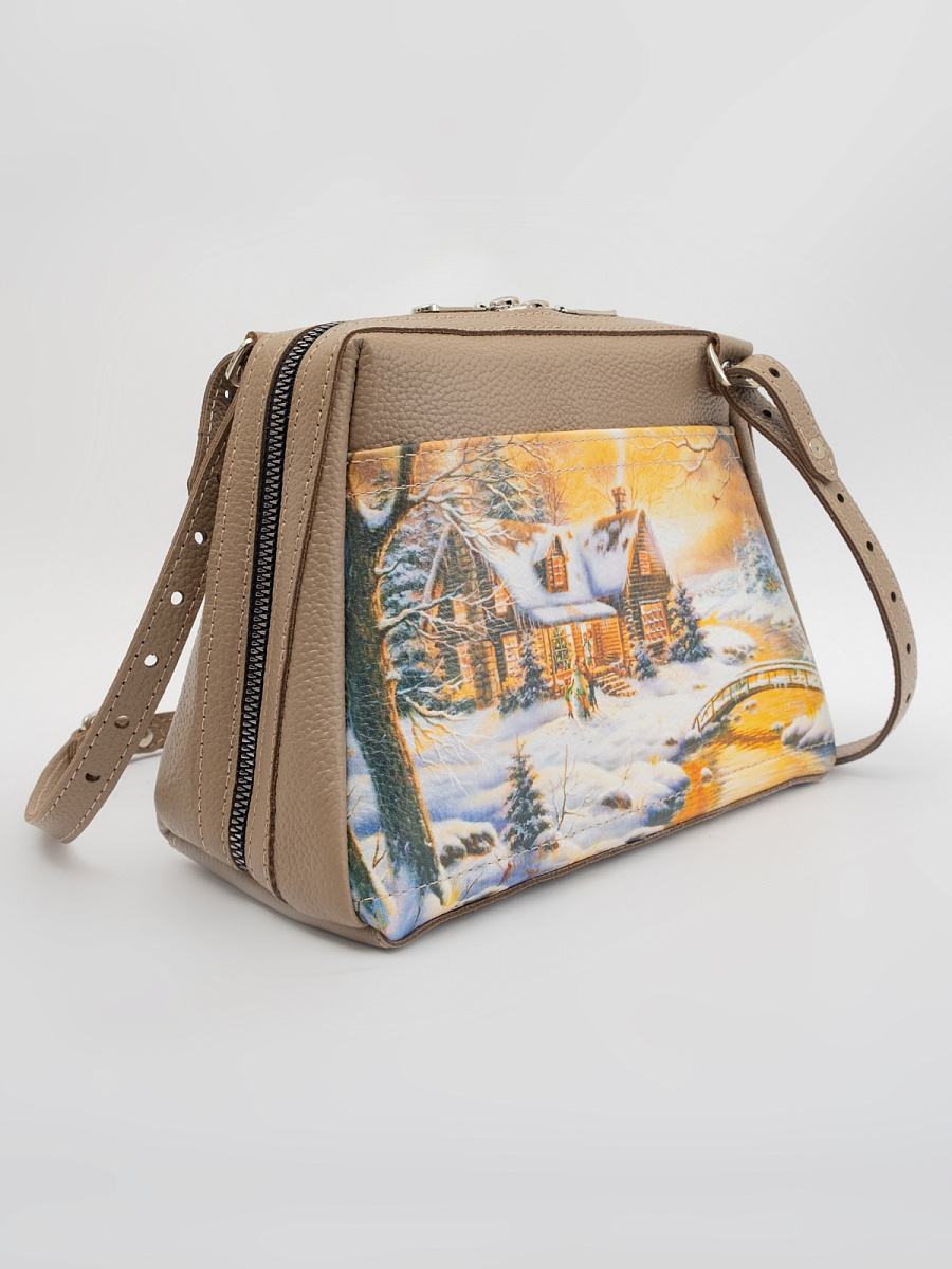 Женская сумка Meri принт. Стильная сумка изготовлена из натуральной кожи, сумка закрывается на молнию . Внутри имеется 3 отделения, одно из них закрывается на молнию, что позволяет использовать его как карман для мелочи и других нужных вещей. Наружный карман закрывается на молнию. Разнообразие цветов кожи позволяют носить сумку с любой одеждой. В комплекте прилагается элегантный плечевой ремешок , который надежно крепится к сумке карабинами, длина ремешка 125 см. Размер: 22 * 17 * 11 см