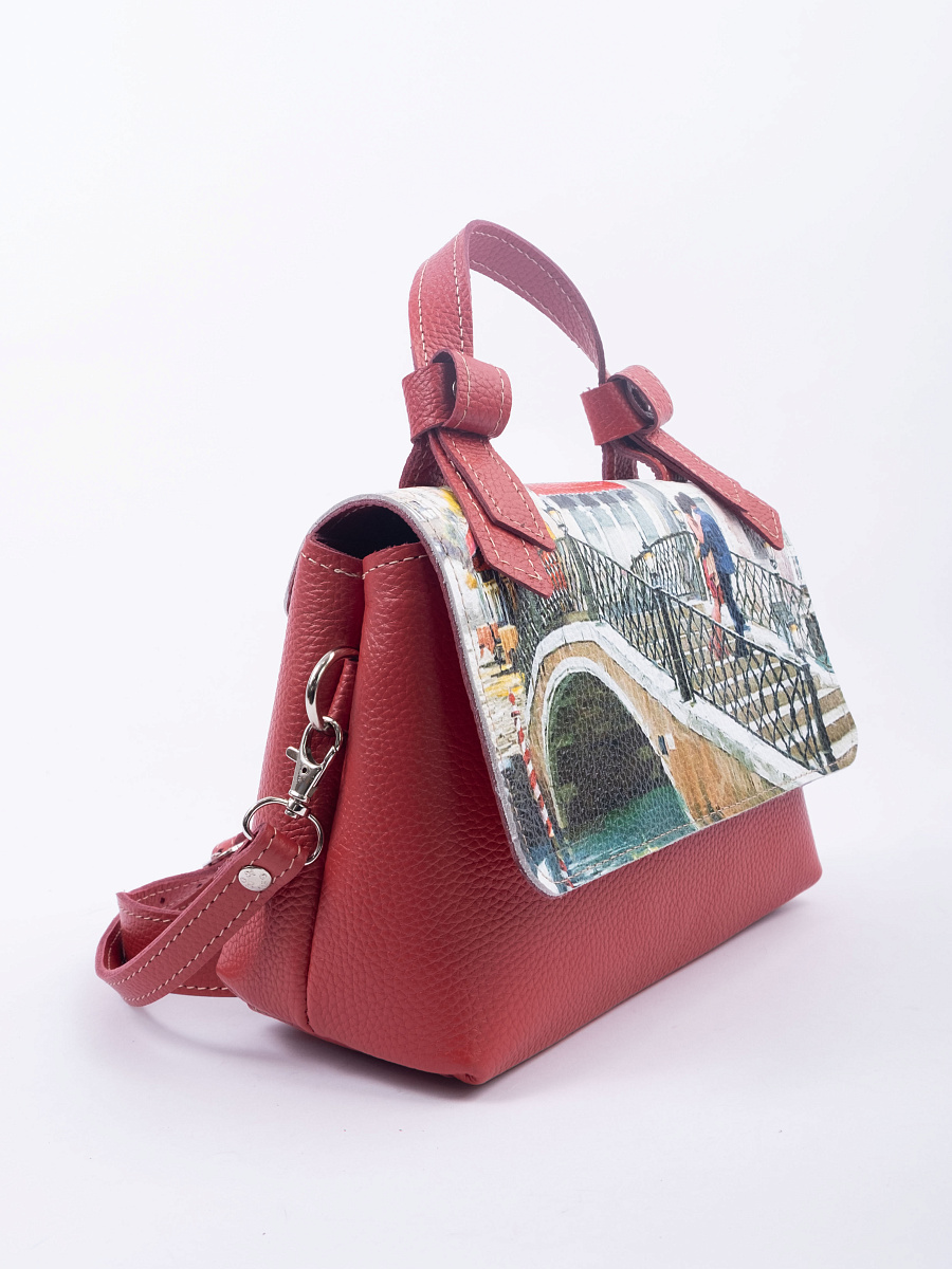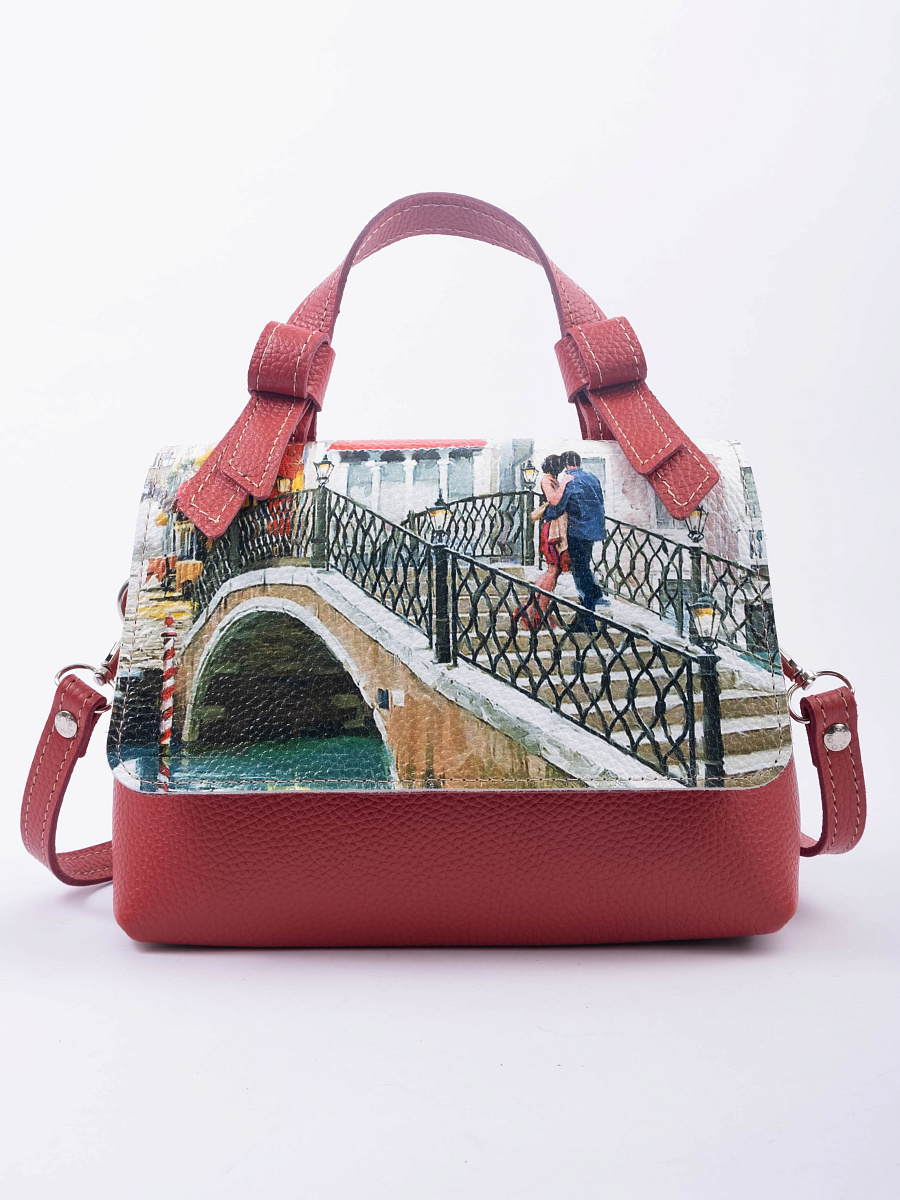 Сумочка— SOFI изготовлена из натуральной кожи . Яркая, красивая, вполне вместительная на каждый день, помещается кошелек, телефон, очки, ключи, кое-что из косметики, паспорт. Верхняя ручка декорированная бантами. Ремень легко меняет длину. Закрывается клапаном с двумя магнитными кнопками кнопками . Внутри два отделения и кармашки для визиток и мелочей. Снаружи карман закрывается на молнию. Эргономичный аксессуар для утонченных особ, удобно для путешествий, прогулок . Регулируемый ремень из натуральной кожи длинною 125 см. размер 23*17*11