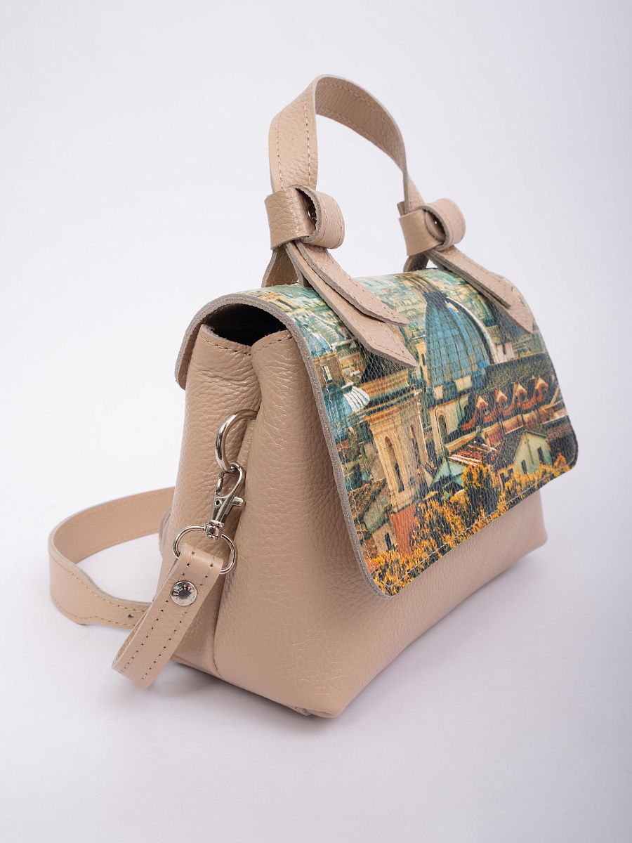 Сумочка— SOFI изготовлена из натуральной кожи . Яркая, красивая, вполне вместительная на каждый день, помещается кошелек, телефон, очки, ключи, кое-что из косметики, паспорт. Верхняя ручка декорированная бантами. Ремень легко меняет длину. Закрывается клапаном с двумя магнитными кнопками кнопками . Внутри два отделения и кармашки для визиток и мелочей. Снаружи карман закрывается на молнию. Эргономичный аксессуар для утонченных особ, удобно для путешествий, прогулок . Регулируемый ремень из натуральной кожи длинною 125 см. размер 23*17*11