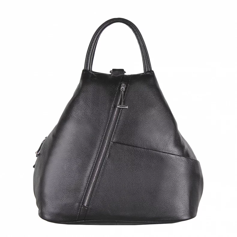 Рюкзак каплевидной формы, выполнен из натуральной кожи.  Дополнен серебристой фурнитурой. Данная модель закрывается на молнию. Каркас мягкий. Носится на плече или в руке. Съемные ремень регулируется по длине.