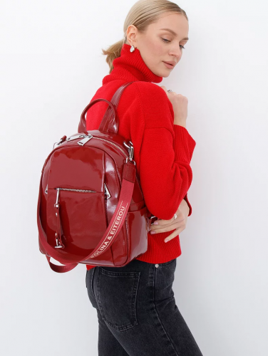 Рюкзак-трансформер, выполнен из натуральной кожи. Дополнен серебристой фурнитурой. Данная модель закрывается на молнию. Каркас мягкий. Рюкзак носится как сумка за текстильный ремень или как рюкзак. Встроенные ремни регулируются по длине.