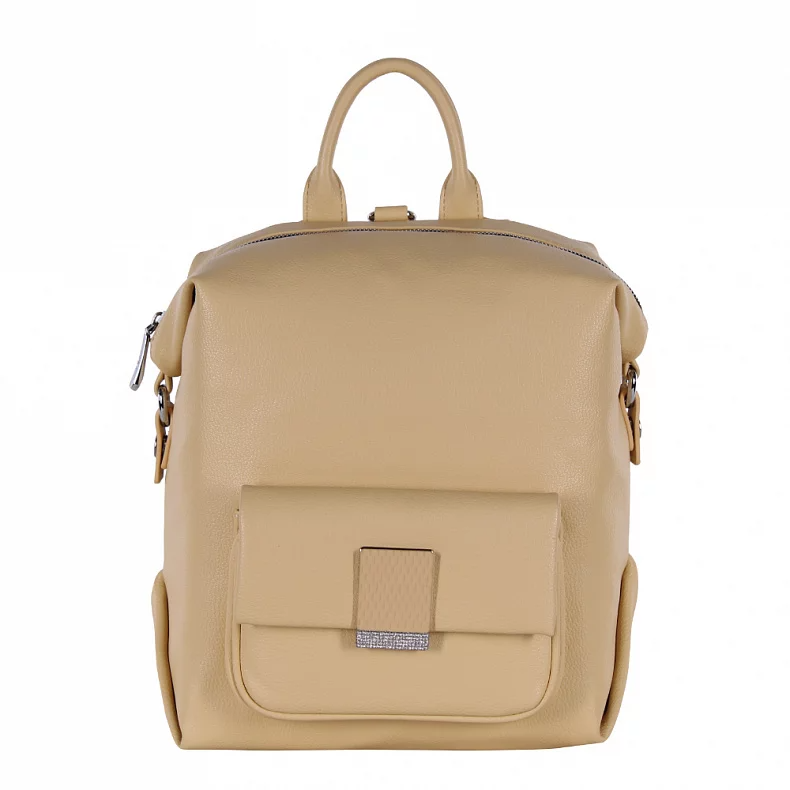 Удобный рюкзак-трансформер, выполнен из экокожи. Декорирован клапаном с пряжкой. Дополнен серебристой фурнитурой. Данная модель закрывается на молнию. Каркас мягкий. Рюкзак носится как сумка или как рюкзак.