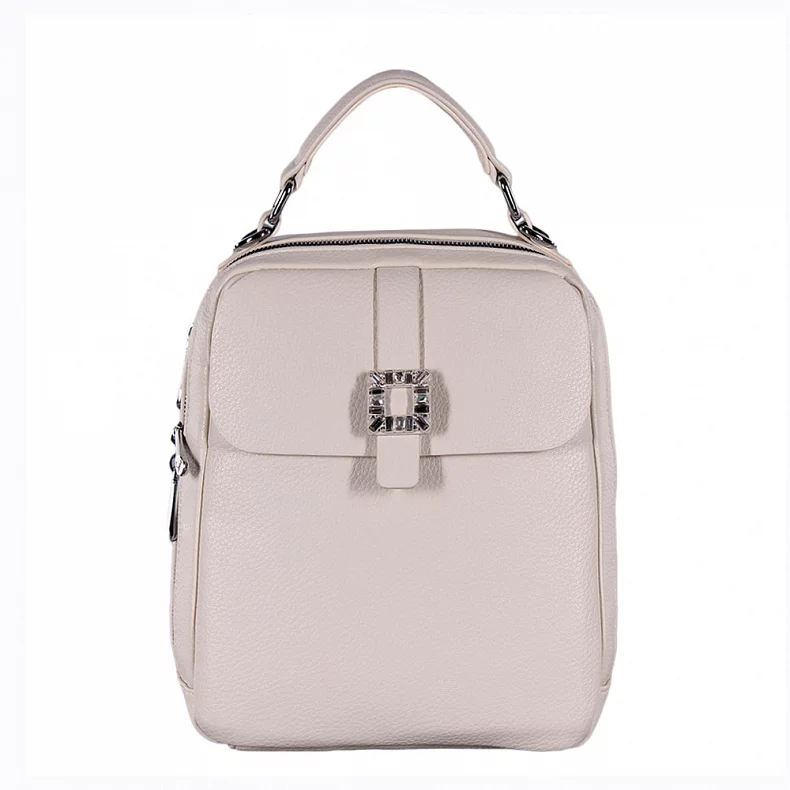 Удобный рюкзак-трансформер, выполнен из экокожи. Декорирован пряжкой. Дополнен серебристой фурнитурой. Данная модель закрывается на молнию. Каркас полужесткий. Рюкзак носится как сумка или как рюкзак.