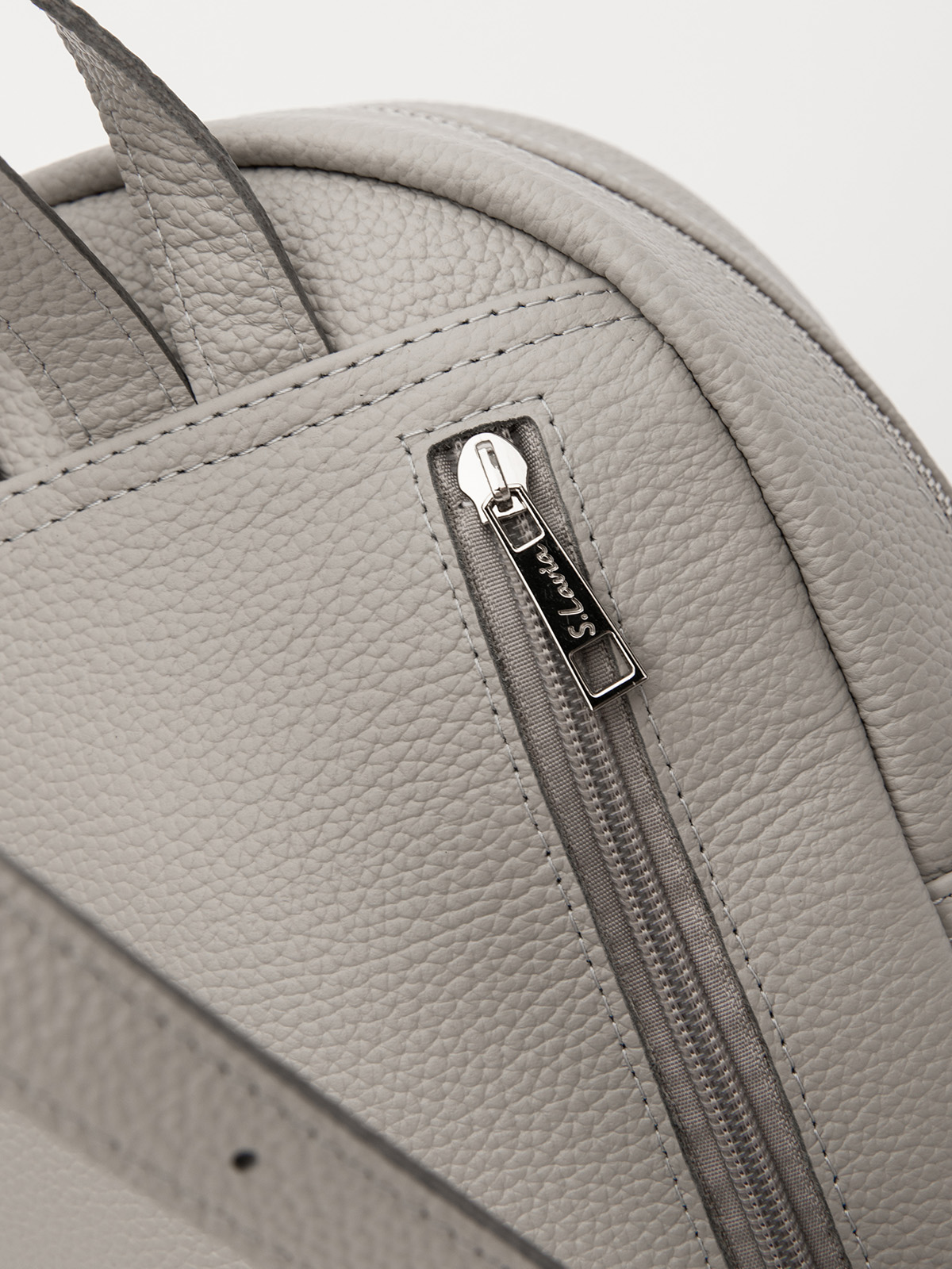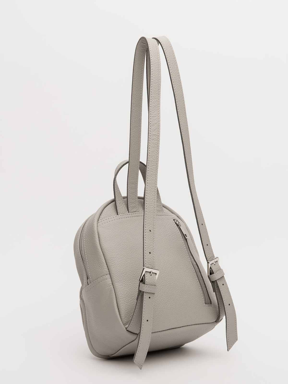 Очаровательный мини-рюкзак из натуральной кожи с жесткой округлой формой, сохраняющей стильный силуэт. Компактный, но удивительно вместительный благодаря продуманной организации: внутри — отдел с перегородкой на молнии и карман для телефона, снаружи — просторный накладной карман и вертикальный карман на молнии сзади. Удобная плоская ручка и регулируемые лямки с пряжками предлагают варианты ношения. Лаконичный дизайн с мягкими объемами подчеркивает благородство кожи.