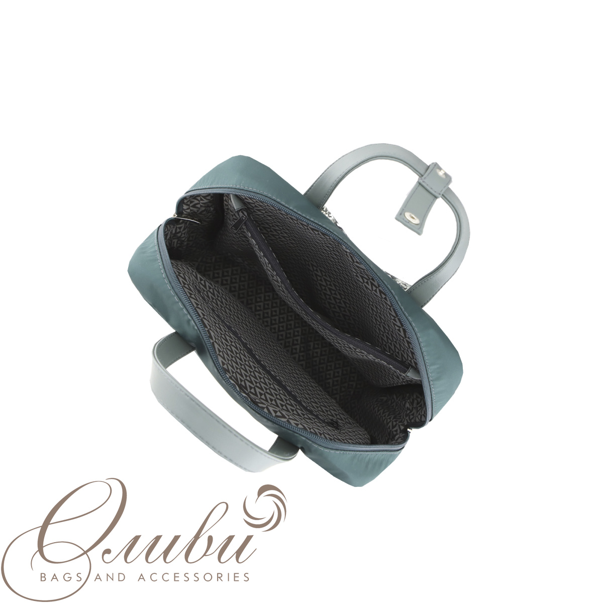 Внутри: открытый карман и два кармана на молнии.