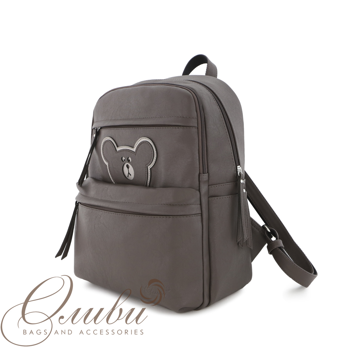 Рюкзак на регулируемых заплечных ремнях и короткой ручке. Формат А4.Два основных отделения на молниях. На передней стенке два кармана на молнии. Задняя стенка: карман на молнии. Внутри: карман для документов, карман на молнии, открытый карман. Снаружи два  кармана.
