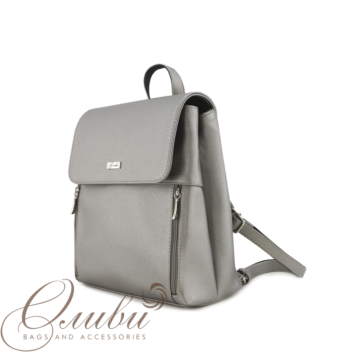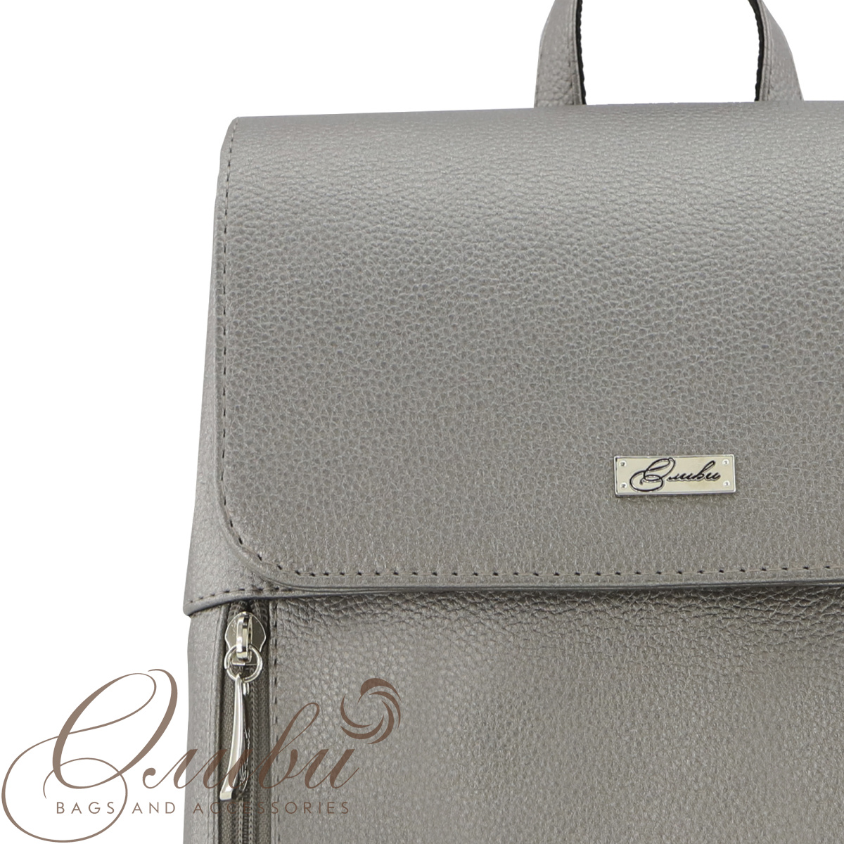 Рюкзак женский Оливи, мягкий с клапаном на регулируемых заплечных ремнях и маленькой ручкой. Два отделения на молнии. Передняя стенка: два кармана на молниях. Задняя стенка: карман на молнии. Внутри: карман на молнии.