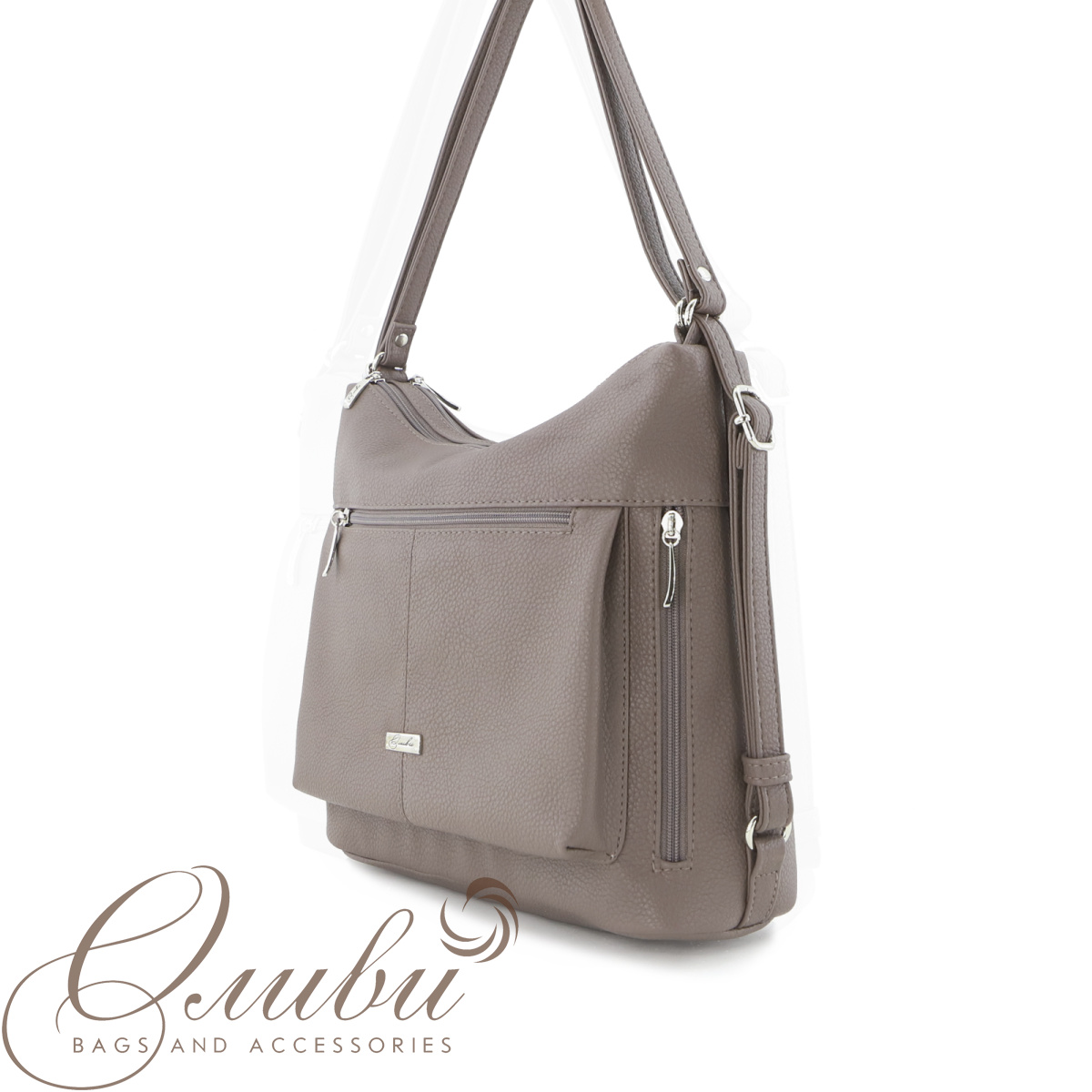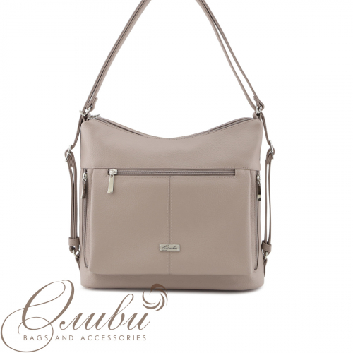 Сумка-рюкзак женская Оливи, мягкая на двух регулируемых ручках. Два отделения на молнии.Внутри: карман для документов на молнии, открытый карман, закрытый карман. Передняя стенка - три кармана на молнии. Задняя стенка - карман на молнии