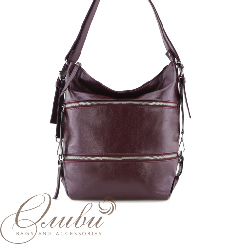 Сумка-рюкзак женская Оливи, мягкая на двух регулируемых ручках. Одно отделение на молнии. Внутри: открытый карман, закрытый карман на молнии. Передняя стенка - два кармана на молнии. Задняя стенка - карман на молнии.