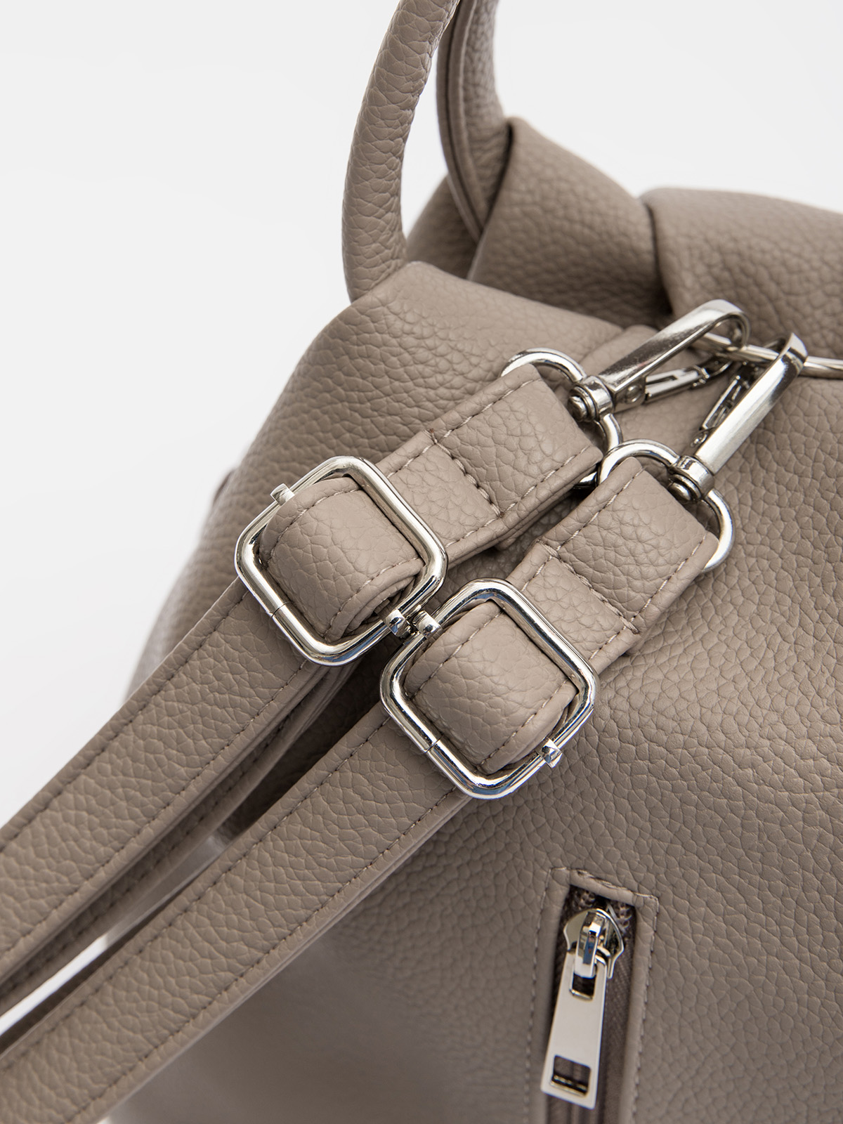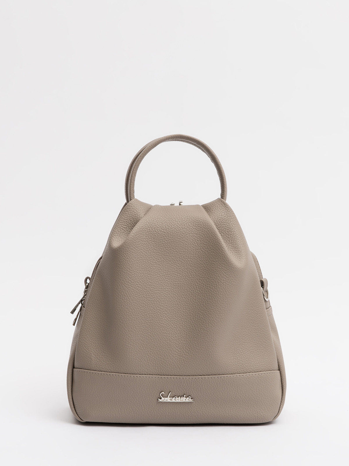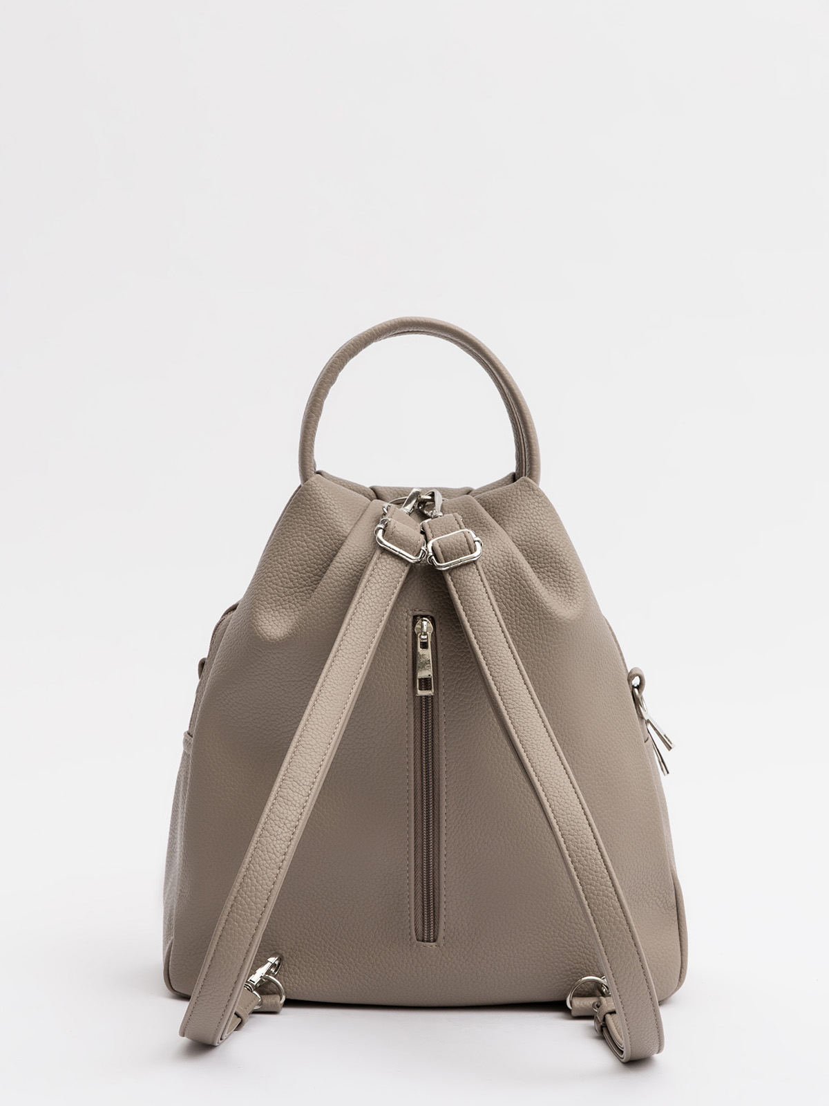 Женская сумка-рюкзак трансформер — универсальный аксессуар среднего размера для повседневного использования. Оснащена двумя круглыми ручками, её удобно носить в руке как сумку, а при необходимости — использовать как рюкзак благодаря съёмным регулируемым лямкам. Модель имеет одно вместительное отделение, внутренний и задний карманы для организации необходимых мелочей. Практичный дизайн сочетается с элегантностью и подходит для любого образа.