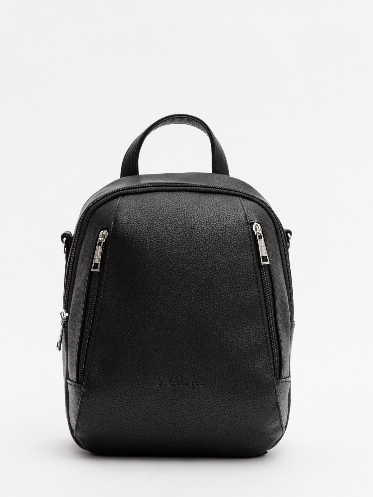 Аккуратный скругленный силуэт, слегка сужающийся кверху, выглядит современно и лаконично. Основное отделение на молнии дополнено двумя вертикальными карманами спереди — всё необходимое будет под рукой и в идеальном порядке.