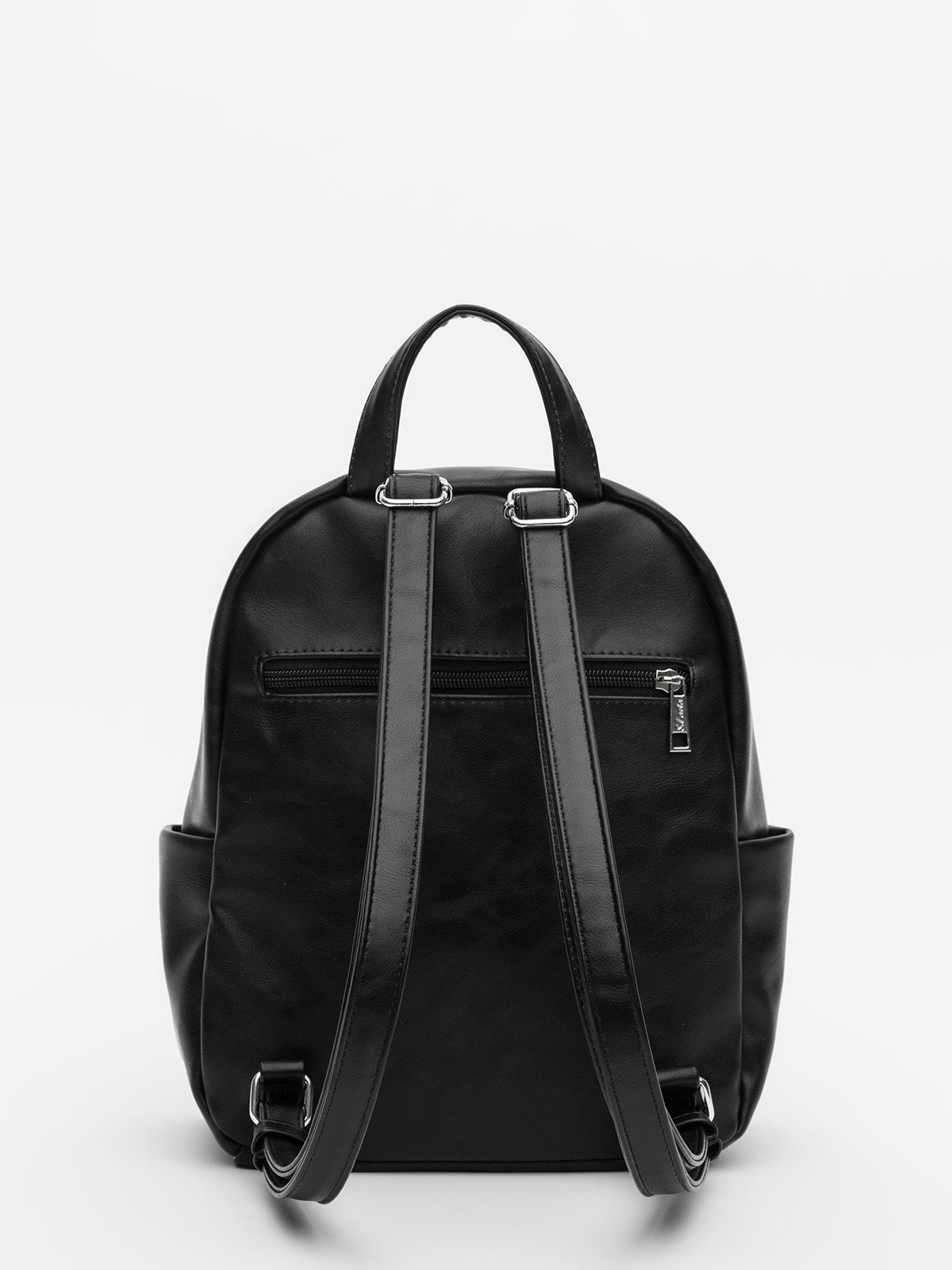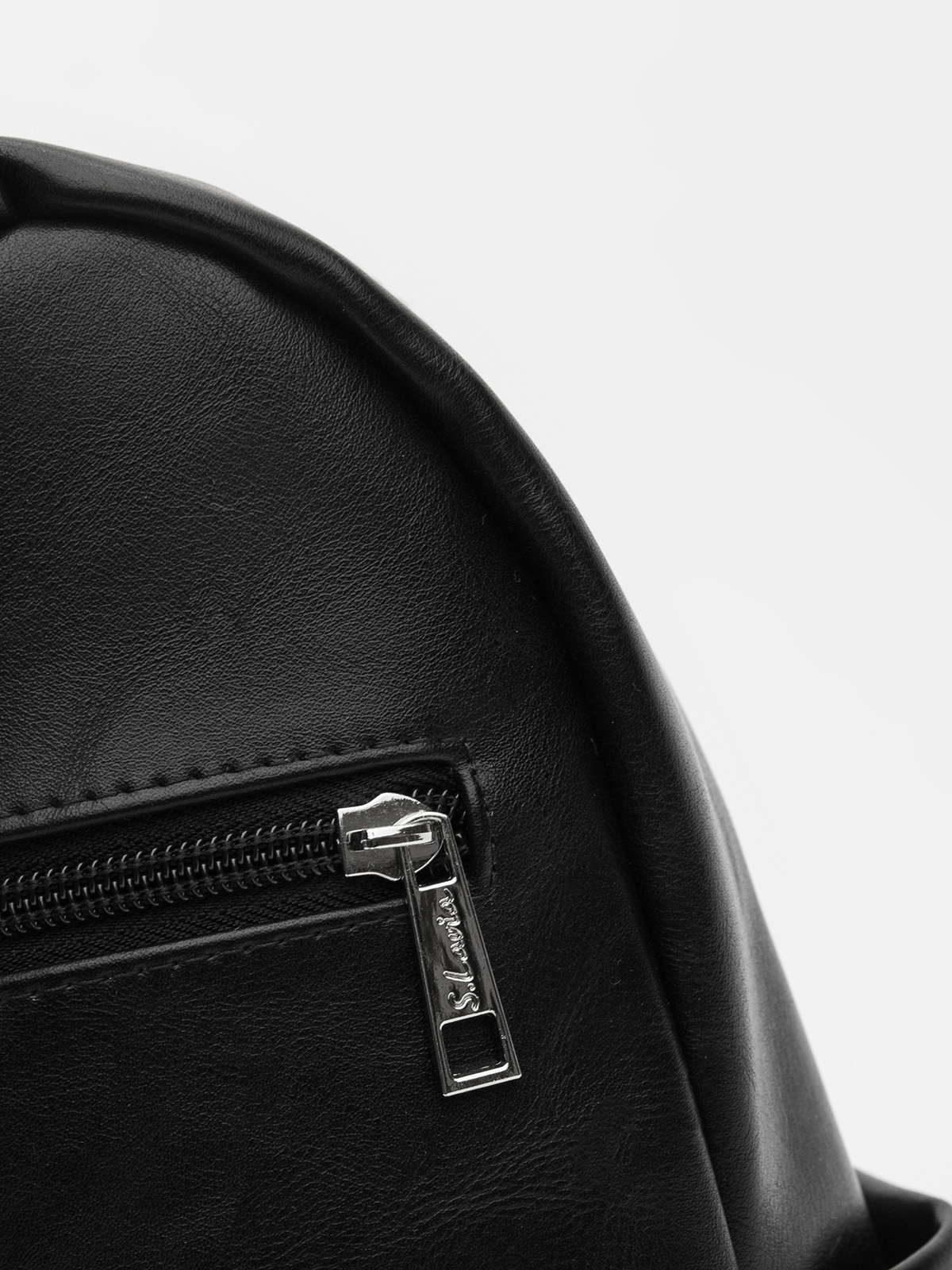 Его скруглённо-прямоугольная форма с рельефной фактурой кожи создаёт выразительный, но лаконичный силуэт. Передняя деталь с карманом на магните и тиснением подчёркивает трендовый характер модели, а боковые карманы на молнии (с кожаными наконечниками) добавляют практичности.