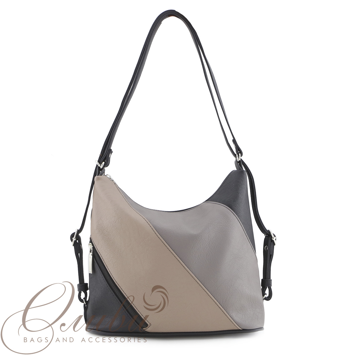 Сумка-рюкзак женская Оливи, мягкая на двух регулируемых ручках. Одно отделение на молнии. Передняя стенка: карман на молнии. Внутри: карман-перегородка на молнии, открытый карман. Задняя стенка - карман на молнии.