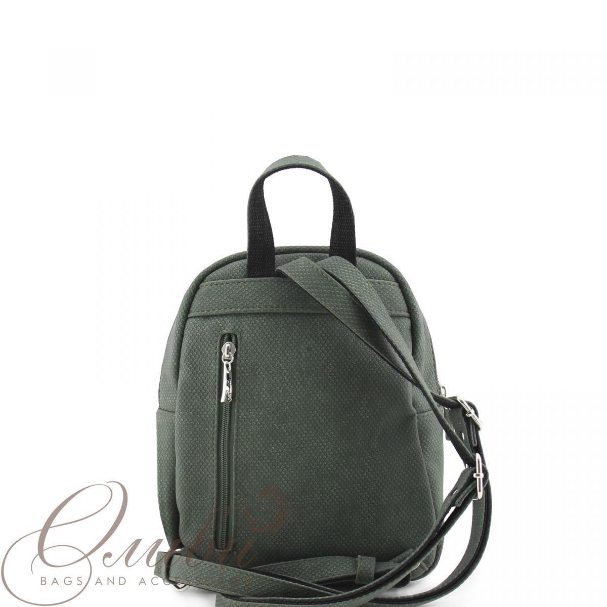 Рюкзак женский Оливи, мягкий на регулируемых заплечных ремнях и маленькой ручке сверху. Одно отделение на молнии. На передней стенке карман на молнии. Задняя стенка: карман на молнии. Внутри: открытый карман.