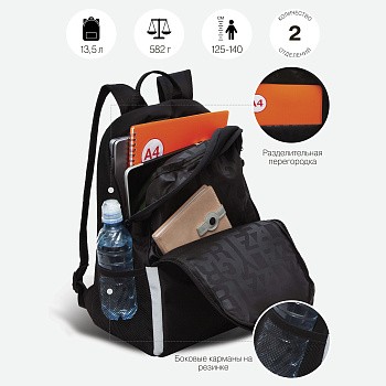 Эта серия школьных детских рюкзаков GRIZZLY подходит для мальчиков от 7 лет ростом от 125 до 140 см. Детские рюкзаки легкие и вместительные. В сумке два отделения для учебных пособий форматом А4, которые помогут организовать внутренний порядок для ученика, отделить учебники от рабочих тетрадей и канцелярии. В основном отделении есть дополнительный внутренний карман для папок.
