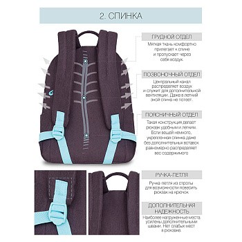 В этой модели есть одно основное отделение объемом 14,5 л. Куда бы вы ни пошли, внутри помещаются все что нужно: предстоит лекция — кладем книги, папки и документы (А4); идем на тренировку — сменную обувь и форму; выбрались на прогулку — теплые вещи и перекус. На лицевой части есть карман быстрого доступа, а со стороны спинки скрытый кармашек. Плюс два боковых кармана.