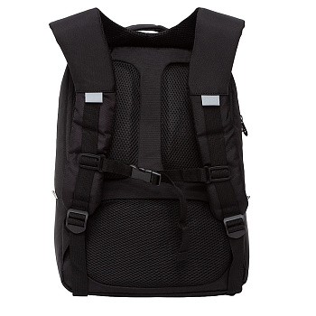 Снять нагрузку со спины помогает анатомическая спинка. Нижняя накладка снижает вес на поясницу. Боковые — поддерживают позвоночник. Нагрудная стяжка не дает лямкам сползать с плеч, что часто бывает в городском потоке людей.