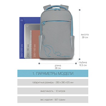 Эта серия молодежных рюкзаков подходит для девочек от 11 лет. Они легкие и вместительные. В большом основном отделении помещаются книги и принадлежности. Второе отделение для папки, файла с рефератом и других документов А4. Внутри два кармашка для канцелярии. На лицевой части есть карман быстрого доступа для денег и проездного, закрытые боковые кармашки для мелочей. Девочка раскладывает все вещи по отделениям и внутри полный порядок.Детские рюкзаки этой серии ярких цветов, с забавными принтами и даже пайетками. Благодаря грязе- водоотталкивающей пропитке ткань долго остается как новая и легко чистится. Плотный полиэстер хорошо держит форму и не деформируется при полной загрузке. А чтобы снизить нагрузку на спину, мы сделали укрепленную спинку. Она помогает сохранить детям осанку. Со всех сторон есть отражатели — ребенка в темноте точно заметят.А главное — эти детские рюкзаки нравятся девочкам. Осталось выбрать подходящий и добавить в корзину.С уважением, команда GRIZZLY.