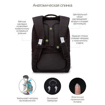 Женский рюкзак GRIZZLY мы сделали легким, вместительным, безопасным для осанки и практичным. Рюкзак рассчитан на рост от 140 до 160 см. В нем есть два отделения. Большое для крупных вещей, книг, папок А4 и т.д. Второе поменьше для принадлежностей. 3 внутренних кармана (в т.ч. для ноутбука 13”) помогают поддерживать порядок внутри. Есть карман быстрого доступа для кошелька и боковые кармашки для воды. Дно твердое, рюкзак не будет провисать. Снять нагрузку со спины помогает анатомическая спинка. Нижняя накладка снижает вес на поясницу. Боковые — поддерживают позвоночник. Нагрудная стяжка со свистком не дает лямкам сползать с плеч, что часто бывает в городском потоке людей. За счет водо- грязеотталкивающей пропитки он меньше пачкается и долго остается как новый. Если рюкзак все же чем-то испачкался, мы рекомендуем ручную стирку в холодной воде. Ткань — плотный полиэстер, который хорошо держит форму. Добавляйте этот рюкзак в корзину и пользуйтесь с удовольствием. С уважением, команда GRIZZLY