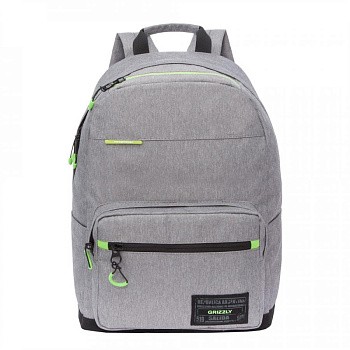 Стильный и легкий  городской рюкзак GRIZZLY для прогулок и  путешествий, отдыха и спорта, работы и магазина, школы и  института. Этот эргономичный городской рюкзак продуман до мелочей. Он имеет одно вместительное основное отделение с карманом для планшета или небольшого ноутбука 15" и  дополнительные карманы.  Большой накладной карман спереди с дополнительным плоским карманом на молнии, карман быстрого доступа для мелочей в верхней части рюкзака с держателем для ключей на фастексе, секретный карман на молнии на спине, а также два боковых кармана. Рюкзак GRIZZLY имеет удобную укрепленную спинку, регулируемые мягкие лямки и ручку для переноски, обшитую тканью. Материал рюкзака с водо- и грязеотталкивающей пропиткой. Двунаправленные реверсные молнии с брендированными пуллерами на замках позволяют легко открывать и закрывать рюкзак.  Рюкзак имеет прочную и грязеотталкивающую фирменную подкладку GRIZZLY.