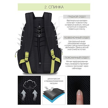 Сгладить повышенную нагрузку на спину помогают анатомическая спинка и плотная ткань, которая хорошо держит форму. Равномерно распределяется вес содержимого, меньше устают спина и плечи, сохраняется правильная осанка.
