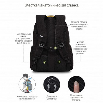 У рюкзака твердое дно, анатомические лямки и спинка с поддержкой позвоночника, а также нагрудная стяжка со свистком. Даже при больших нагрузках осанка остается здоровой. Чтобы повысить безопасность в темное время суток, мы добавили со всех сторон светоотражающие элементы.